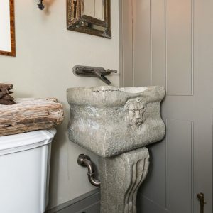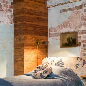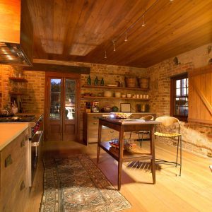 The kitchen was the most complex part of the whole renovation. It used to be the stables next to the house. A really cool part of the room is some of the tabby on the walls and the brick behind it is 250 years old and some is just thirteen years old. It’s impossible to tell the difference. I love to ask expert renovation guests if they can tell which part is original and which isn’t.