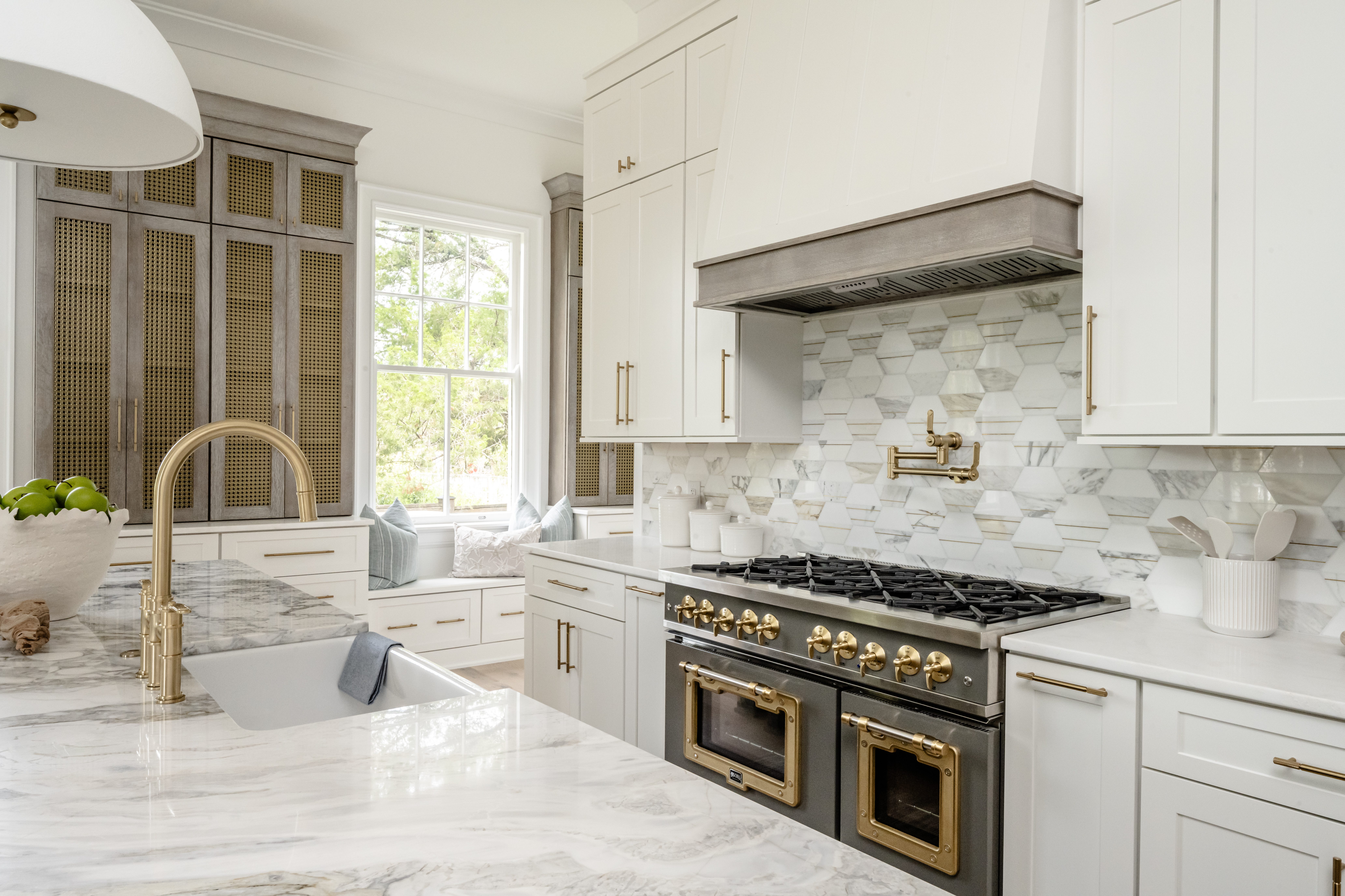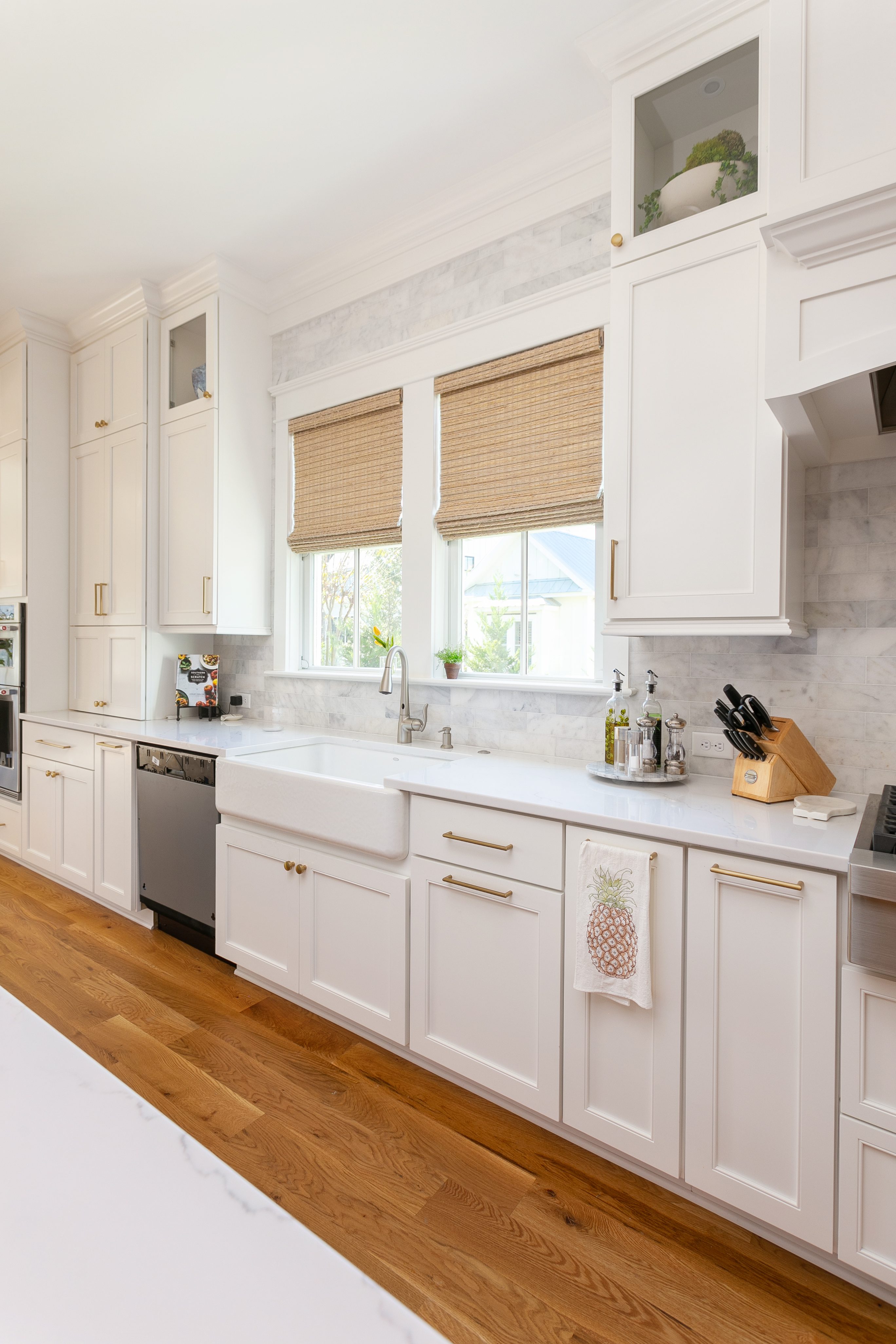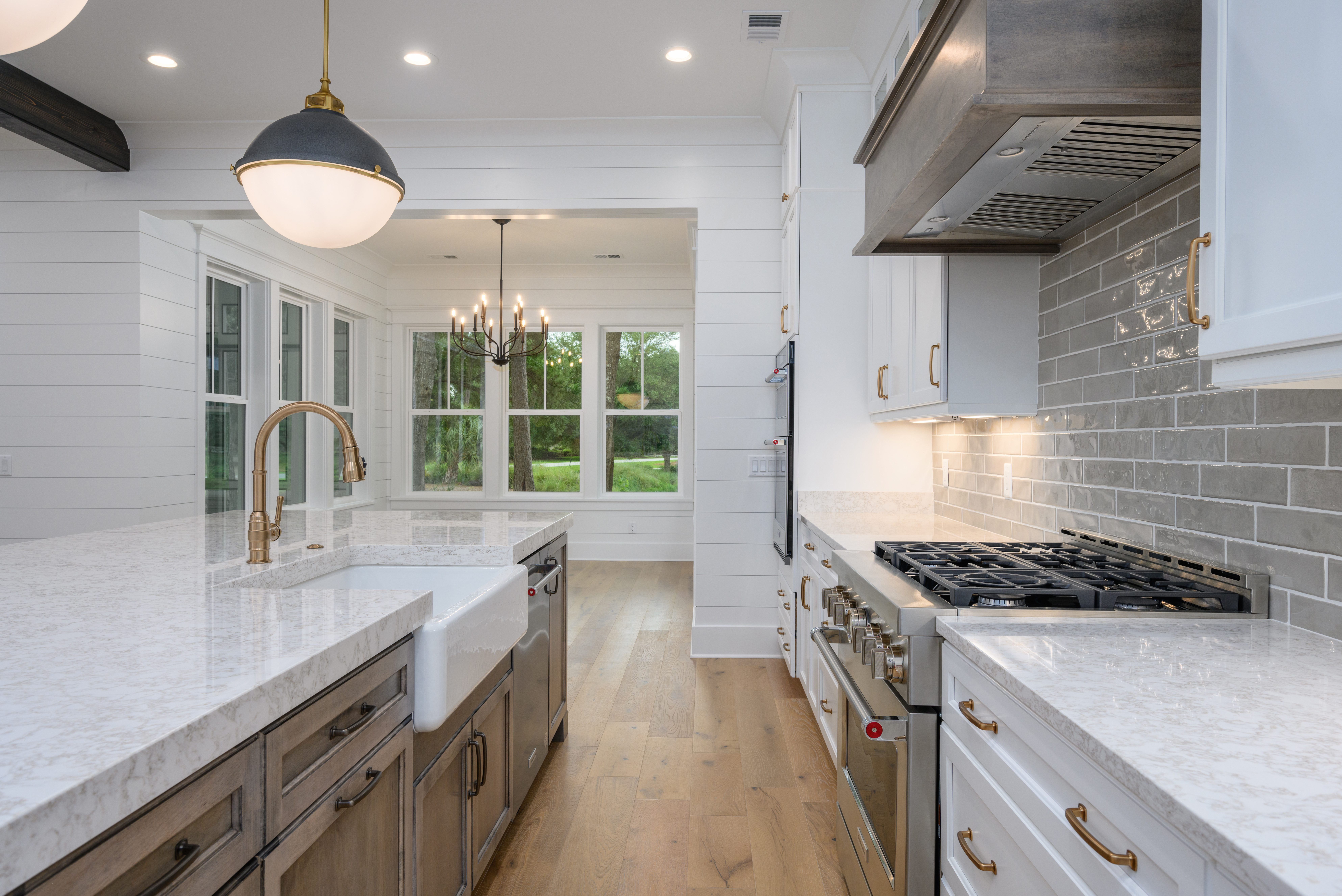 One of the most striking ways to incorporate a farmhouse sink is in a large island. This setup makes the sink a showpiece, visible from all angles, and offers a highly functional, central work zone. This is especially useful in modern Lowcountry homes with open-concept layouts, where the kitchen doubles as a social hub. The apron-front design looks beautiful in transitional or coastal interiors and pairs well with butcher block, marble, or quartz countertops.