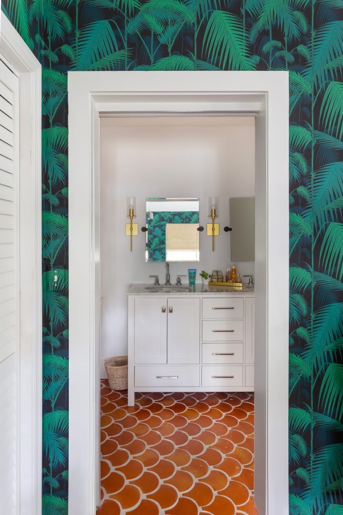 Chelsea’s master bathroom offers a mediterranean ambiance with scalloped flooring. Paired with gold finishes, it’s the perfect space to take a relaxing bath after a long day.