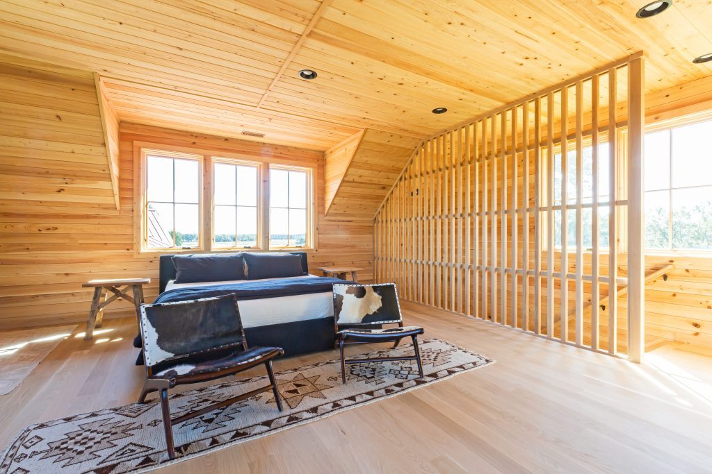 This space was filled with natural elements so the rug was used to liven up the space and give it another texture, and a little color. This massive rug covers a lot of surface area in this living room. How stunning?