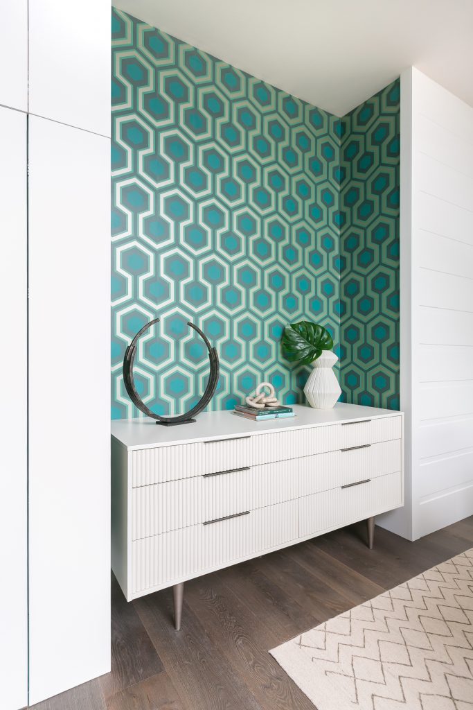 It’s meant to make a statement but doesn’t have to be overwhelming. An easy starting point is to identify one wall you can focus on as an accent. This works well in bedrooms, living rooms, and other large spaces where furniture is typically the focal point. Even in a small powder room, one wallcovering can make a huge difference.