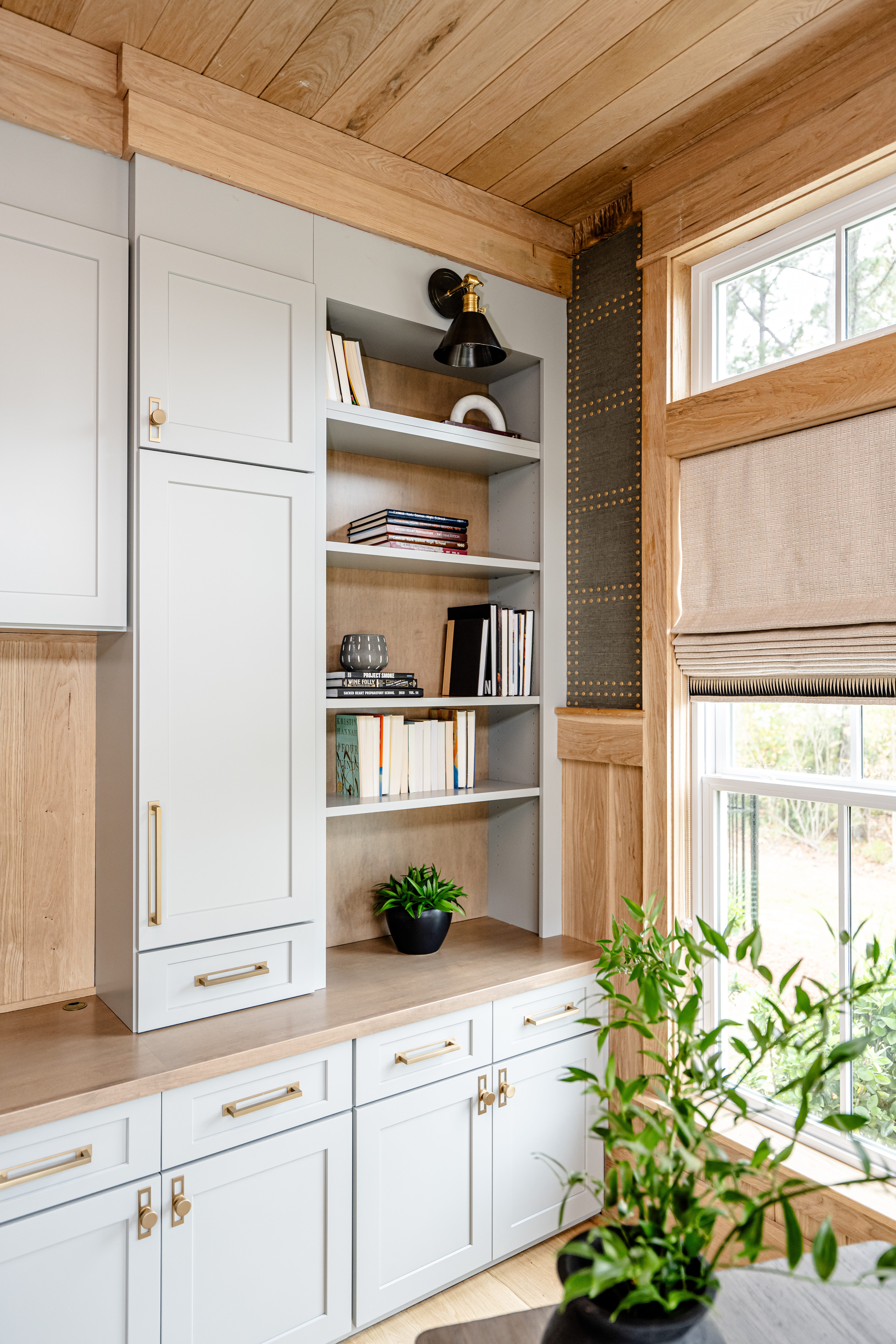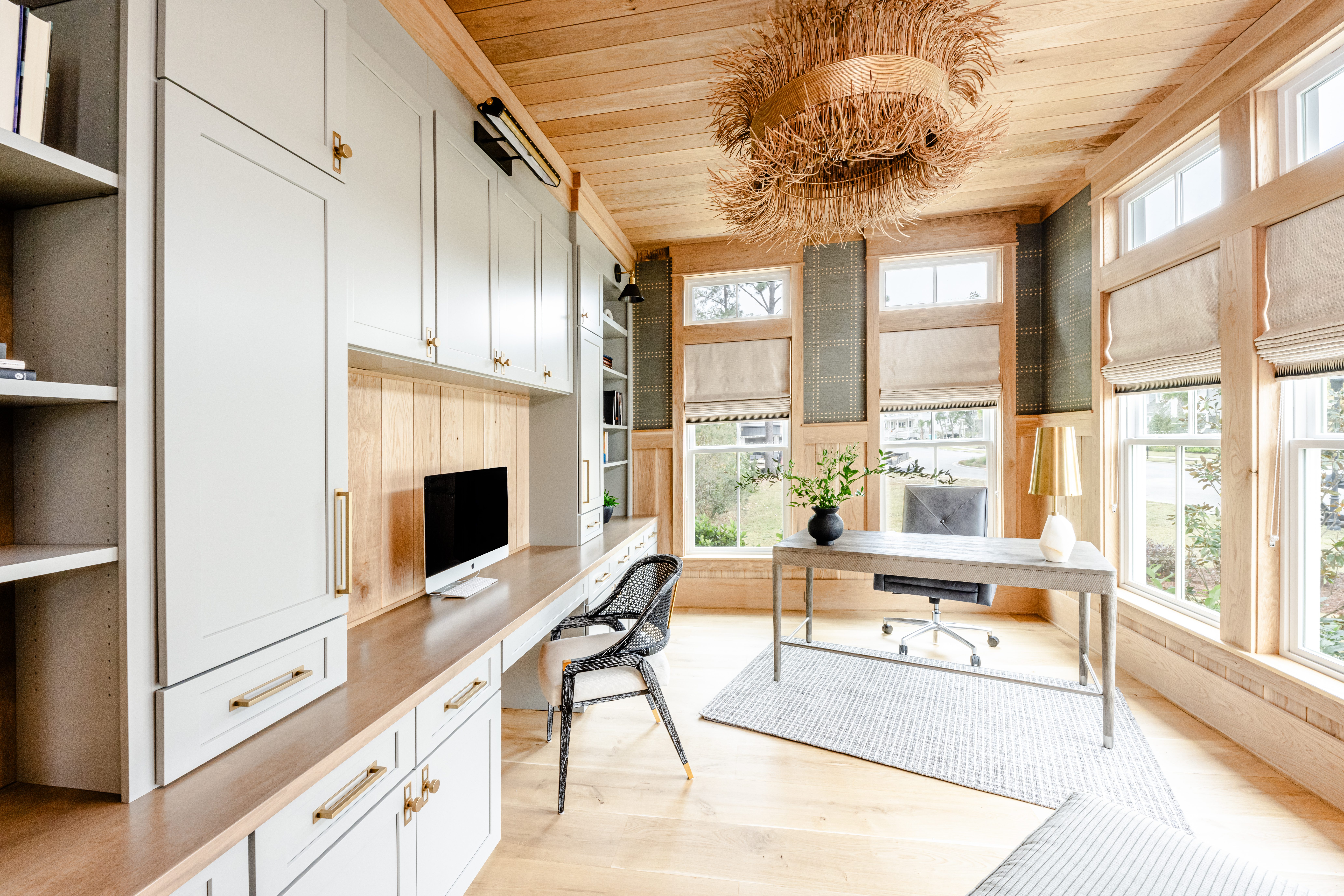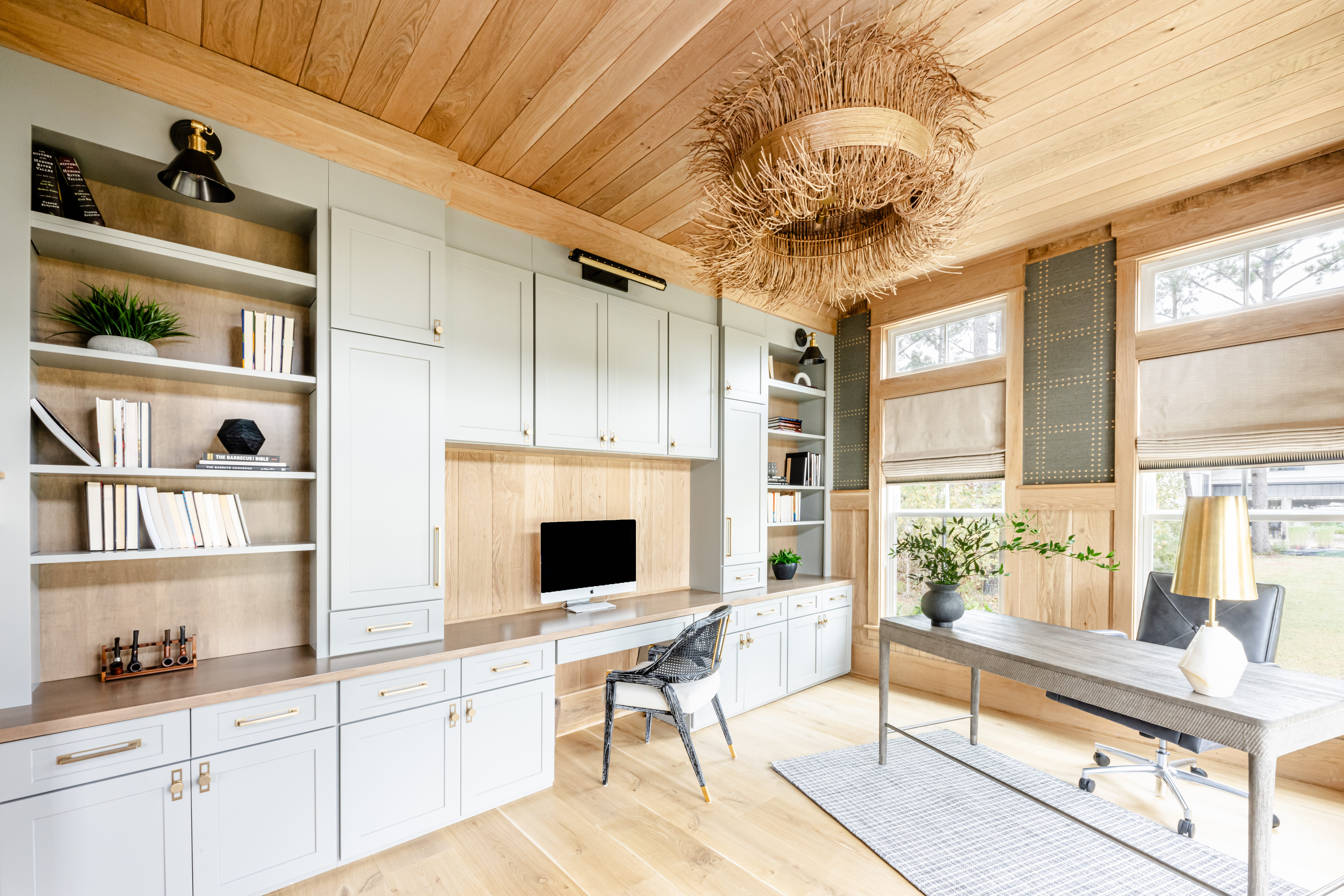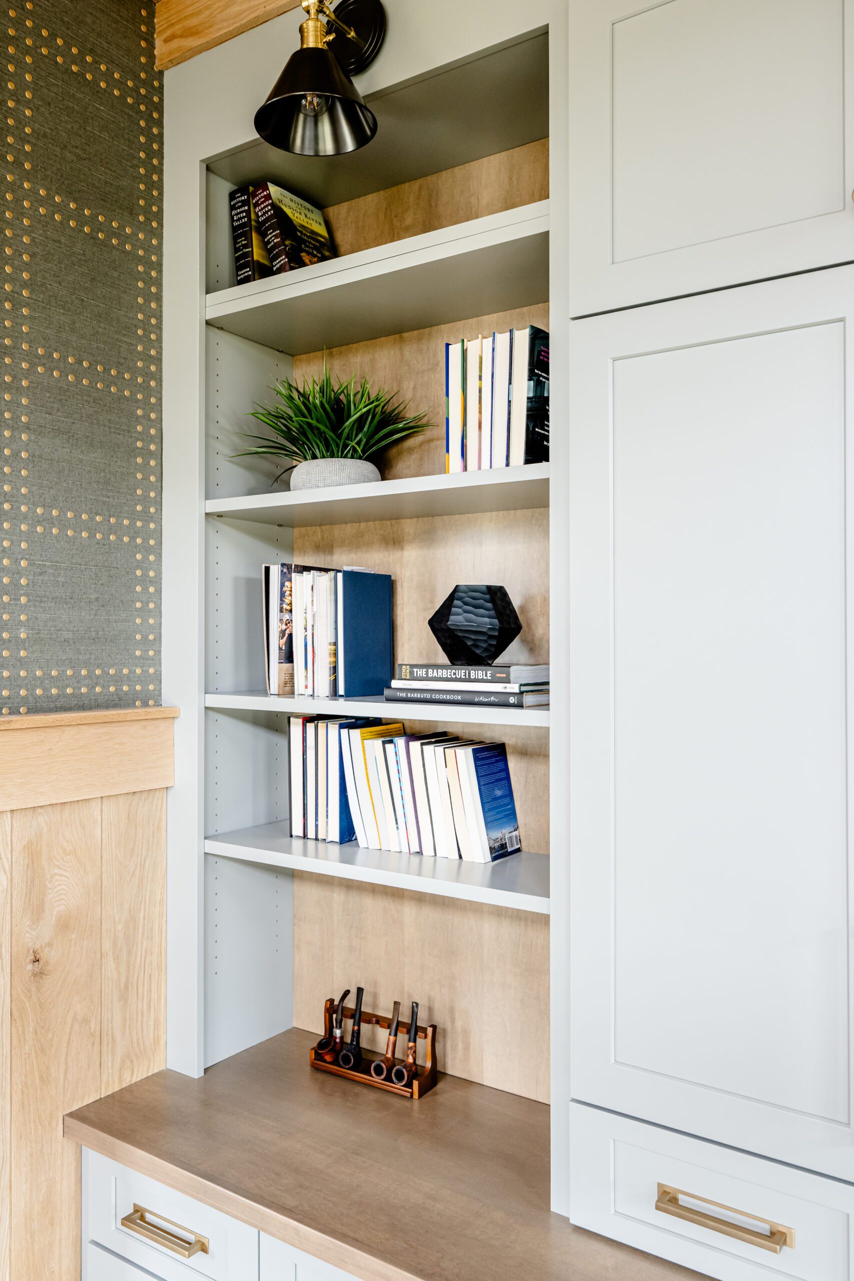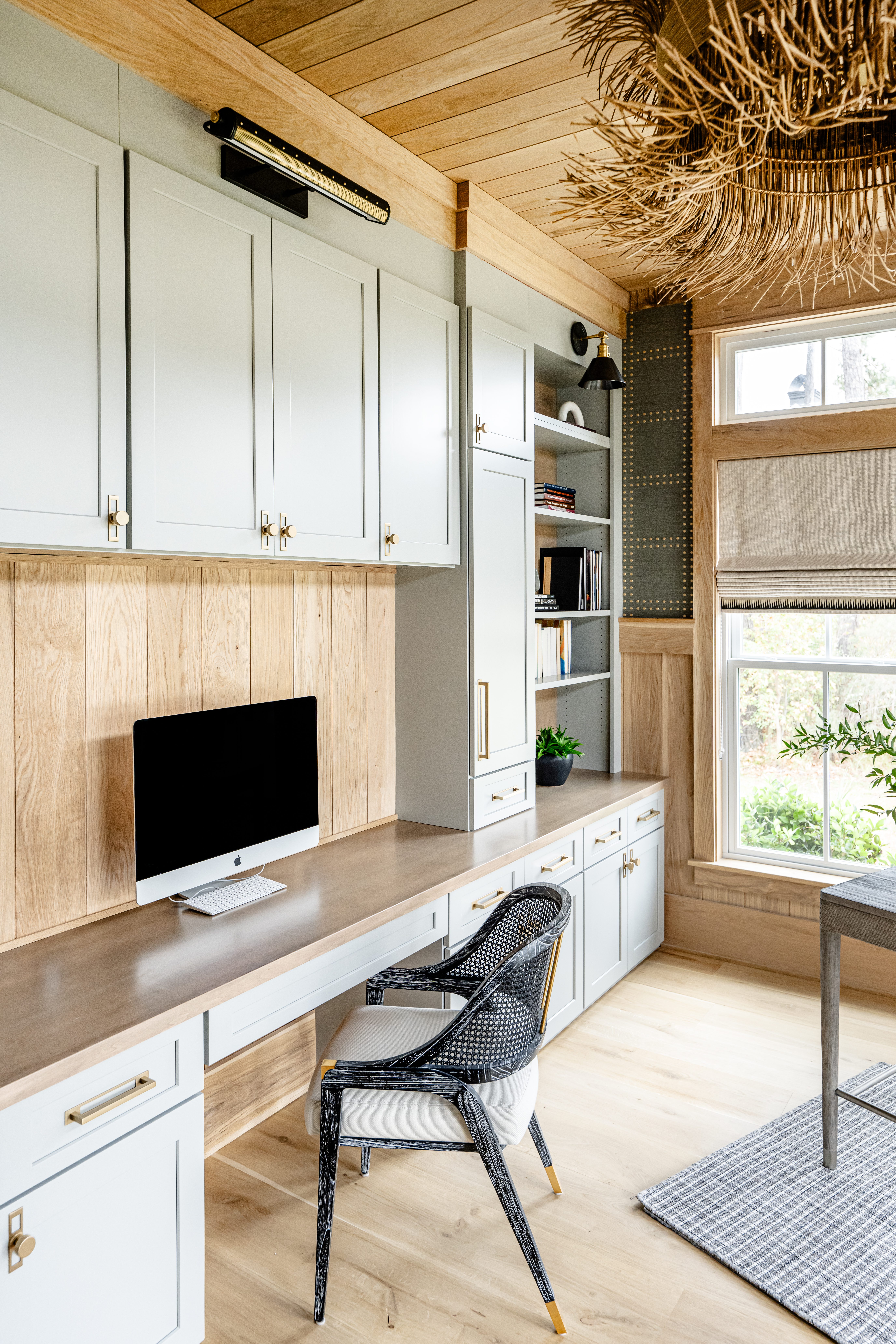 This custom-built home features a seriously organized and well-styled home office, perfect for those in the family who work from home.